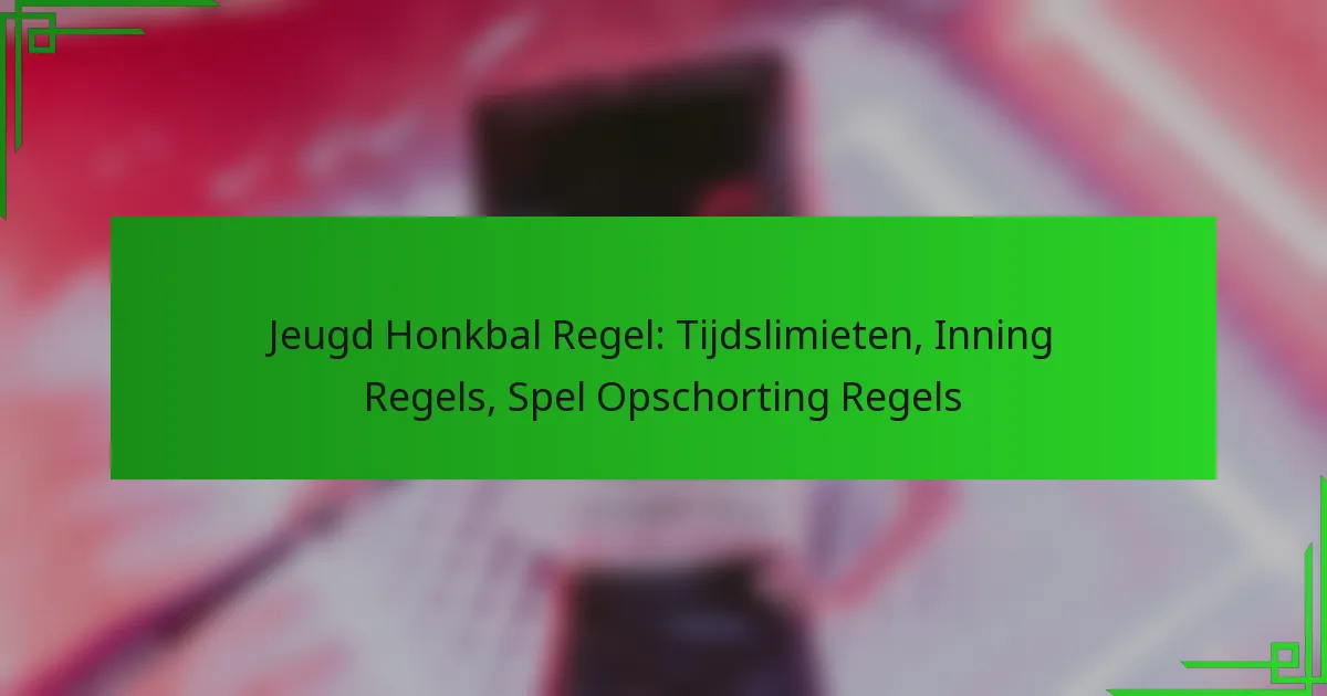 Jeugdbaseball omvat specifieke regels met betrekking tot tijdslimieten, inningregelingen en wedstrijdonderbrekingen om de ervaring voor jonge spelers te verbeteren. Tijdslimieten variëren doorgaans van 1,5 tot 2 uur, wat betrokkenheid bevordert terwijl rekening wordt gehouden met de ontwikkelingsbehoeften van atleten. Inningregelingen verschillen per leeftijdsgroep, wat zorgt voor geschikt spel, terwijl het begrijpen van de regels voor wedstrijdonderbrekingen essentieel is voor het handhaven van veiligheid en continuïteit tijdens onvoorziene onderbrekingen.